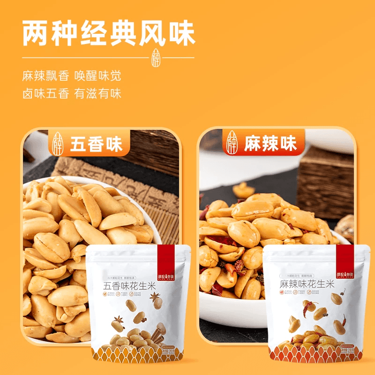 XUEJICHAOHUO 薛記揚げ物 - スパイシーピーナッツ 210g - 殻付きピーナッツ、サクサクとした美味しいスナック、飲み物に最適 | Yami