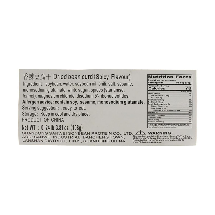 WUXIANZHAI スパイシー豆腐ジャーキー 3.81 オンス | Yami