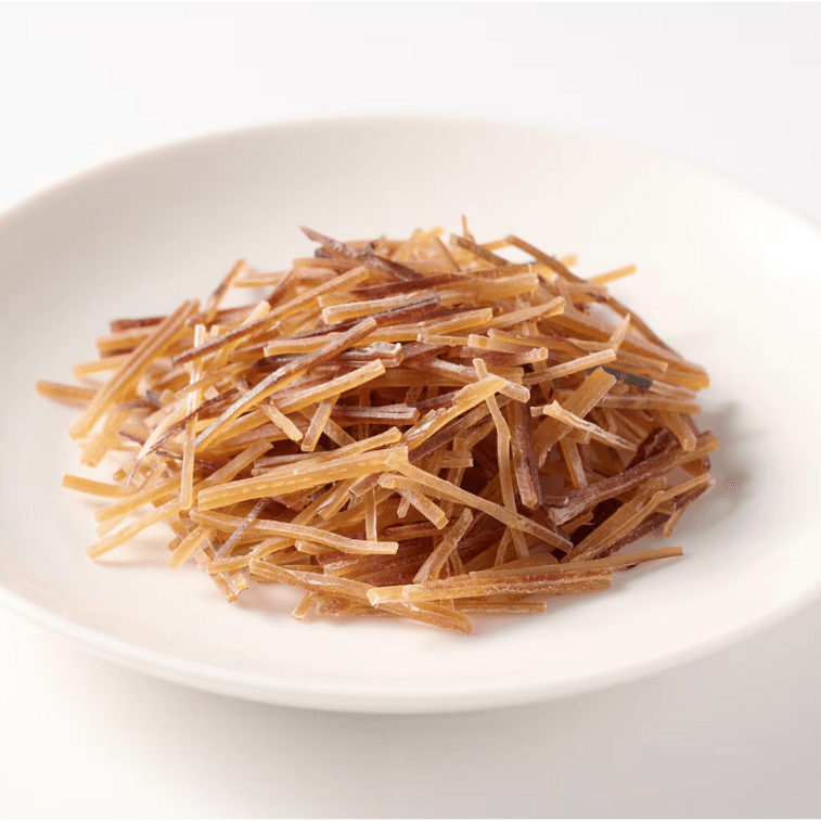 イカは薄切りにしてから、食べやすいように細切りにされています。ほんのりとした甘みがあります。