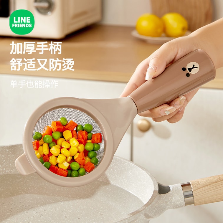 【中国からの直送】日本 LINE FRIENDS ザル 家庭用 ステンレス製 ストレーナー フィルタースクリーン ブラウン 1個