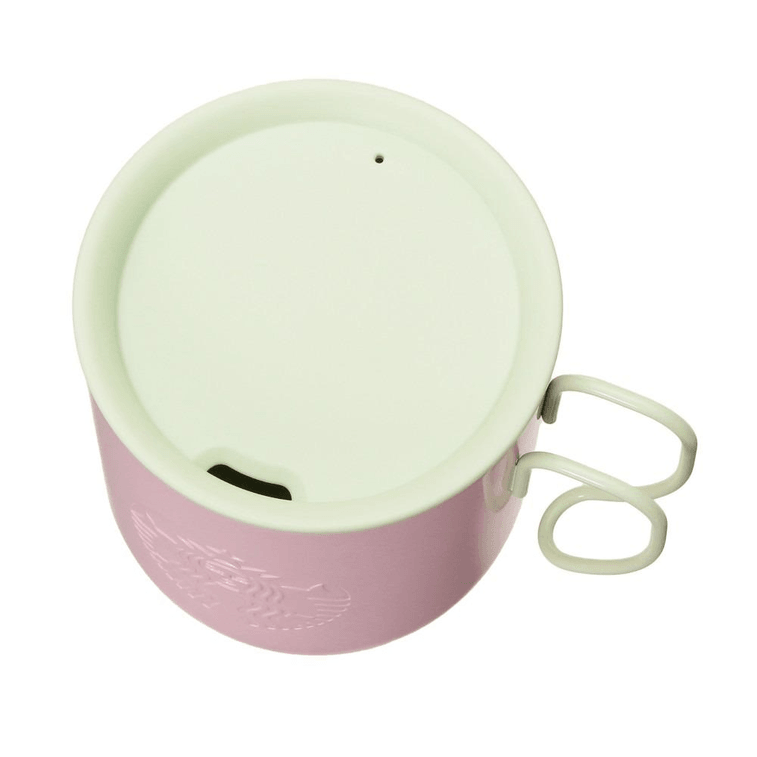 鮮やかな淡いピンク色のステンレス製マグカップ。