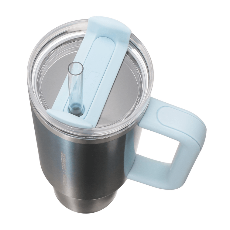 この多機能断熱マグは、「直接飲む」「ストローで飲む」「注ぎ口を閉じる(蓋を回すだけ)」の3通りの飲み方ができ、様々なシーンで活躍します。ストローの底には滑り止めのシリコンスリーブが付いています。持ちやすいハンドルと大容量も特長です。マグ本体はアイスブルーのグラデーションカラー。二重構造のステンレススチール製で、優れた保温・保冷効果を発揮します。