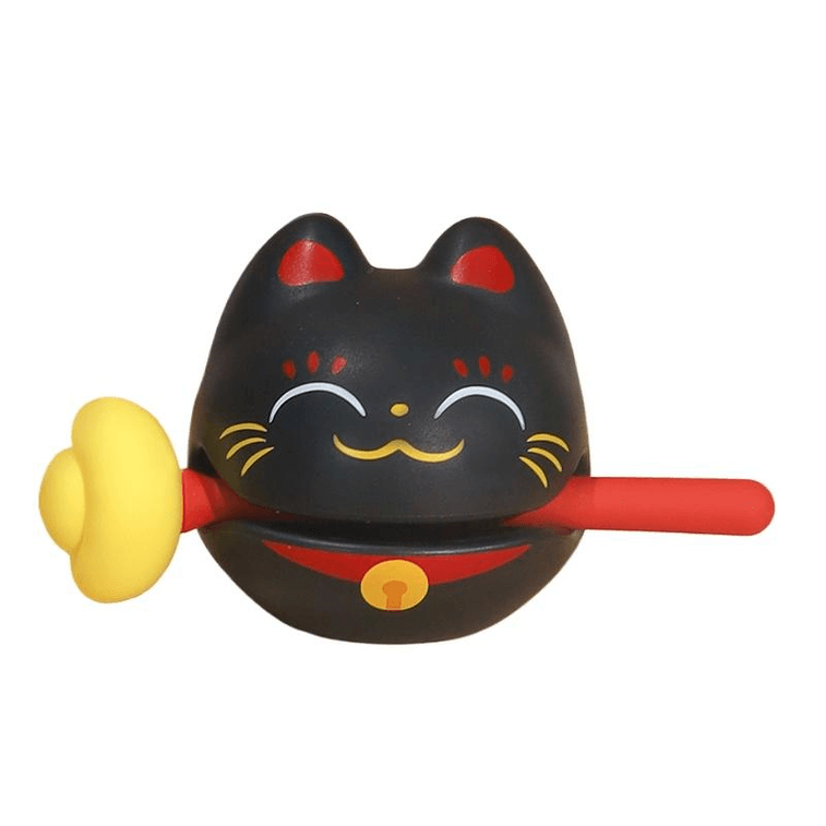 [中国直送] Heiwan ストレス解消おもちゃ 小さな木製の魚を叩くデスクトップオーナメント ブラックラッキーキャット 57*68*60mm