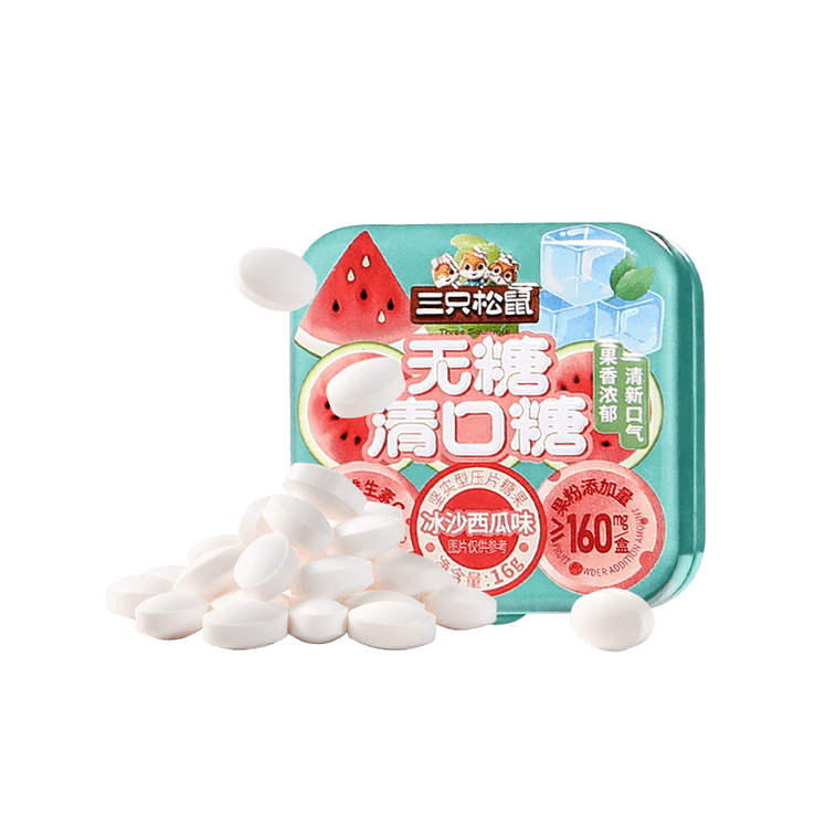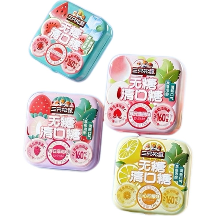 THREE SQUIRRELS スリー・スクイレルズ シュガーフリー ブレスフレッシュニングキャンディ [フルーツフレーバー] 息を爽やかにするミント、フルーツビタミンC配合の低脂肪キャンディ、ミックスフレーバー、16g×4箱 | Yami