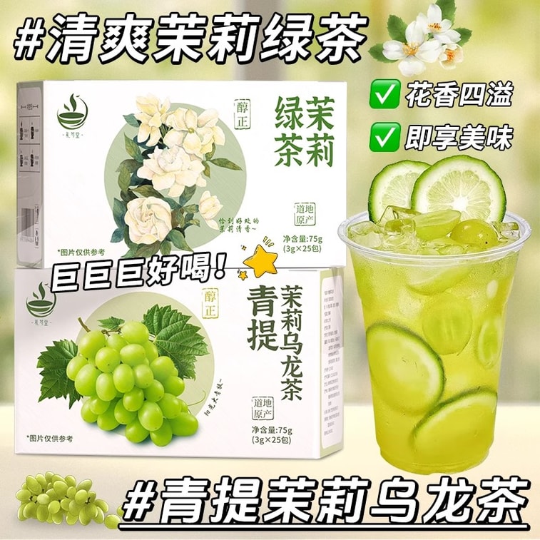 【中国直送】夏にぴったりの爽やかドリンク!青ブドウジャスミンウーロン茶+ジャスミングリーンティーバッグ - 女性のための水出しフルーツティー。淹れると爽やかな味わい。青ブドウジャスミンウーロン茶 75g