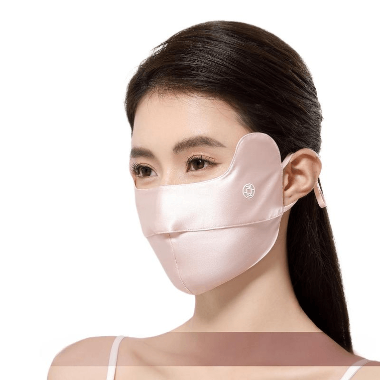 【中国直送】夏琴シルク UVカット 日焼け止めマスク 女性用 (2025スタイル) ミラー付き ピンク (23.5*13.5cm)