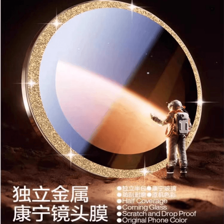 【中国直送】Shengshitong Apple 16pro フラッシュダイヤモンド携帯電話レンズフィルムカメラ保護デザートゴールド * 1 個