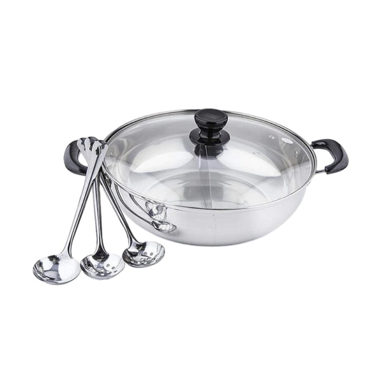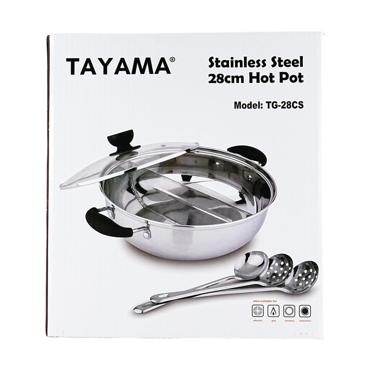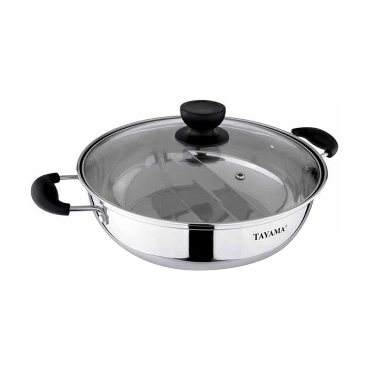 TAYAMA 11インチ ステンレス製 デュアルしゃぶしゃぶ鍋 仕切り付き 28cm TG-28CS