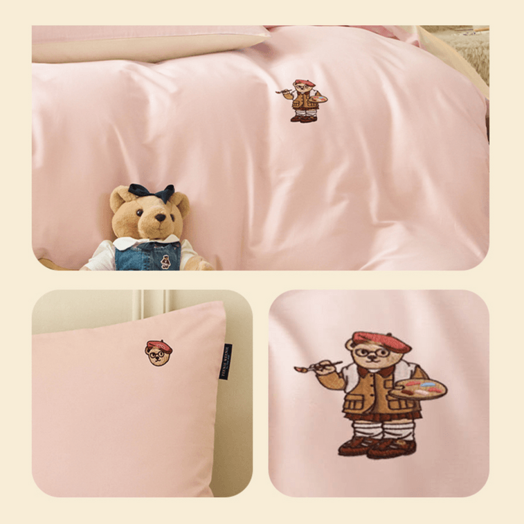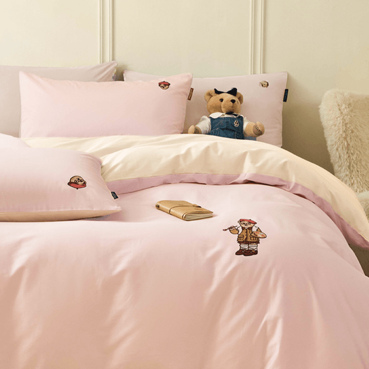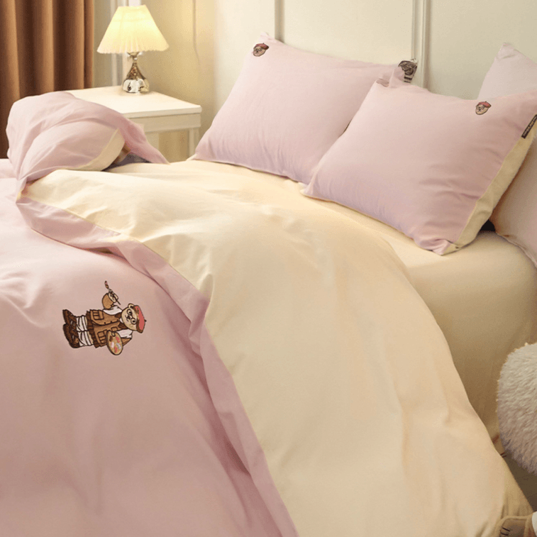 40スレッドカウントコットンウォッシュ寝具セット ライトピンク&アイボリー ソフト 220x240cm 掛け布団カバー 245x270cm シーツ 48x74cm 枕カバー