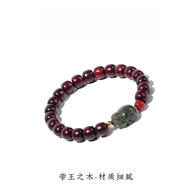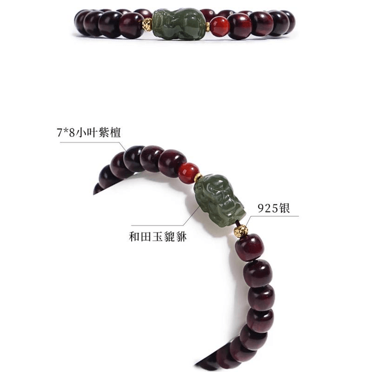 [中国直送] 大運河、幸運のお守り、小葉白檀貔貅ブレスレット、和田翡翠貅+南赤瑪瑙 7*8