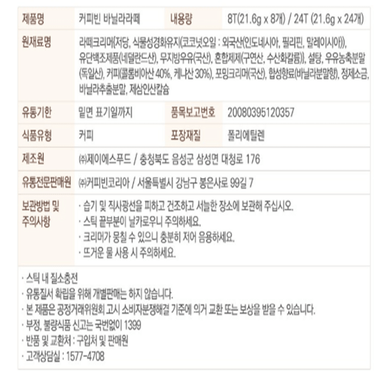The Coffee Bean Vanilla Latte, 21.6g x 24 Sticks