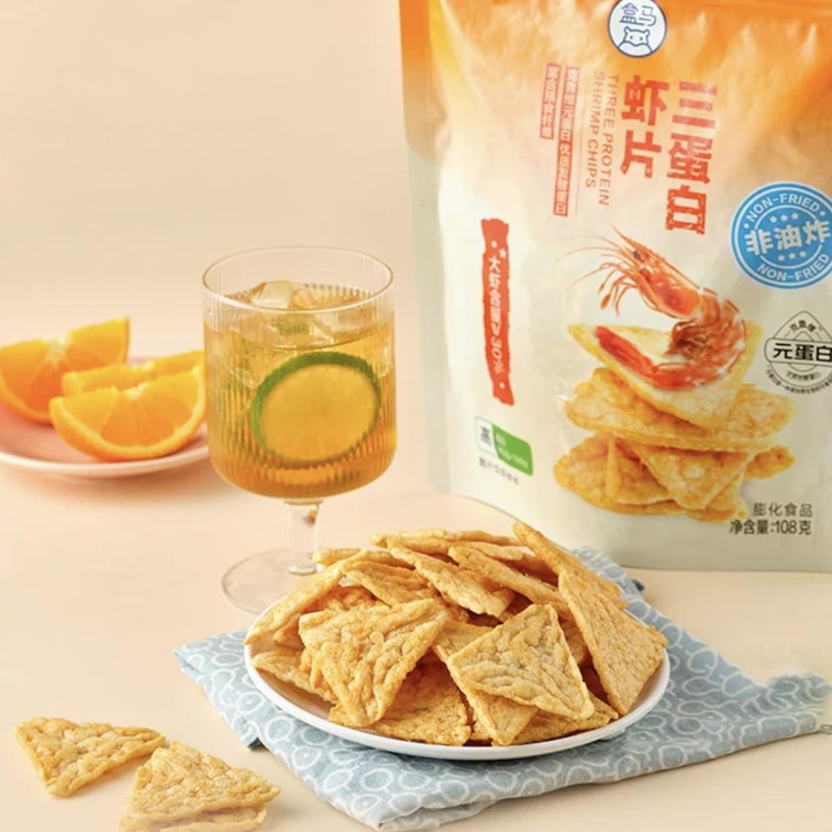 卵白シュリンプチップス3個、3.81オンス【エビ肉含有量≥30%】【ヘルシー、ノンフライ、高繊維・高タンパク】