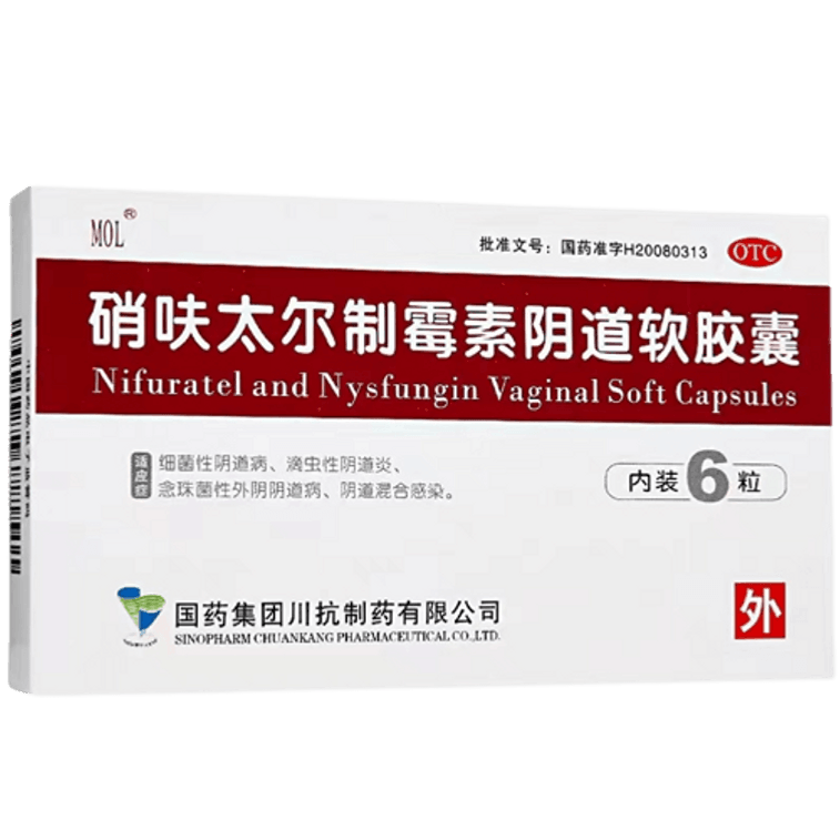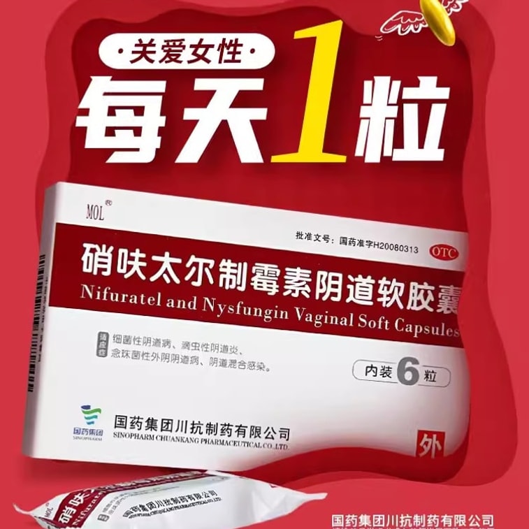 MOL ニトロフラントインナイスタチン膣用ソフトカプセル(日本) - 膣カンジダ症の婦人科用薬 - ニトロフラントイン外用坐剤 - 6カプセル/箱(2箱を推奨)