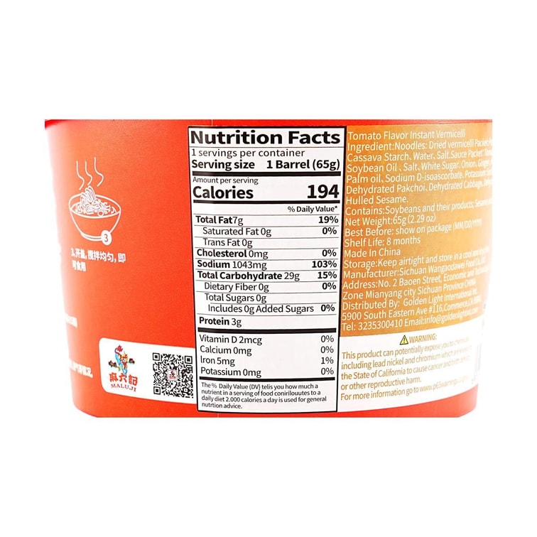トマト風味インスタント春雨、2.29オンス