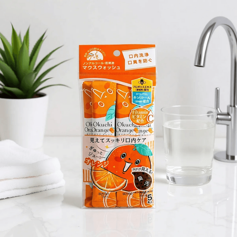 Okuchi 旅行用ホワイトニングマウスウォッシュ、オレンジ、5個入り | Yami