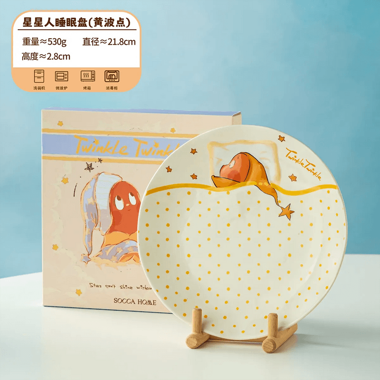 トゥインクル トゥインクル スリープ プレート 8.5インチ イエロー ポルカドット セラミック テーブルウェア