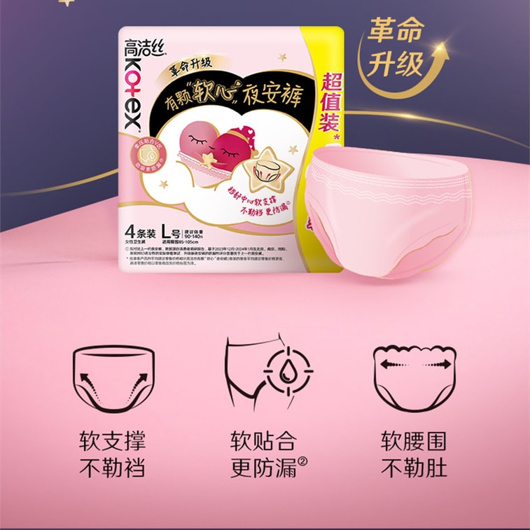 Ultra-thin soft-core night pants soft-core night pants sleep pants ultra-thin leak-proof sanitary napkins size M 4 pairs