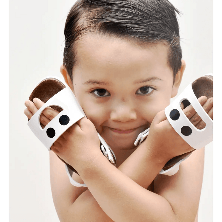 MOM LOVES ME キッズ ホワイト ヘリンボーン コルク サンダル 2.5インチ