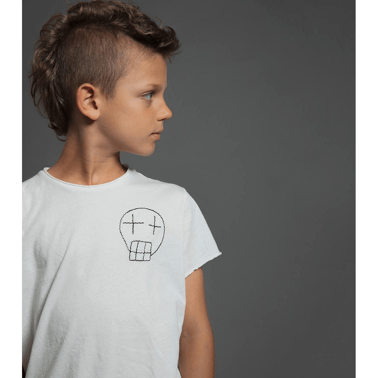 MOM LOVES ME 子供用 刺繍スカルTシャツ (ホワイト) 18~24ヶ月