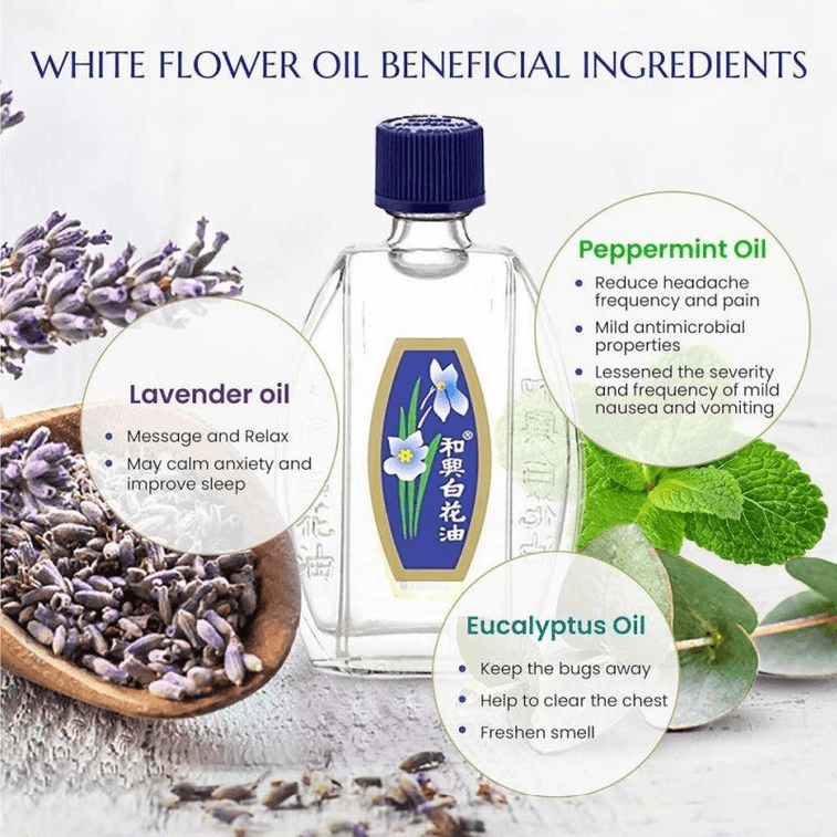 ヘキシングホワイトフラワー外用鎮痛オイル - 20ml x 6本 - 頭痛、筋肉痛、関節痛をすばやく和らげます - 携帯用鎮痛オイル