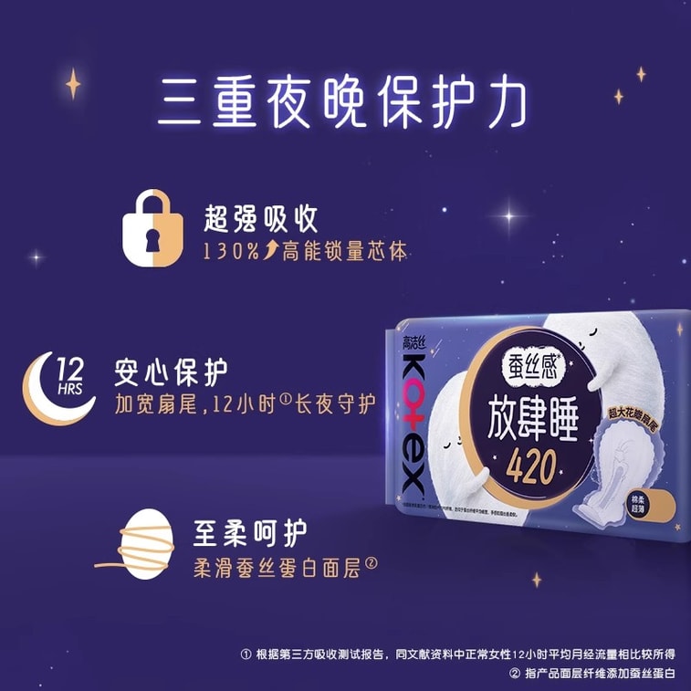 Kotex Sleep Indulge クラシックシリーズ 極薄コットンソフト夜用生理用ナプキン (420mm x 9枚/2パック)