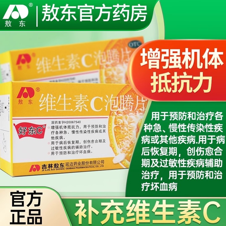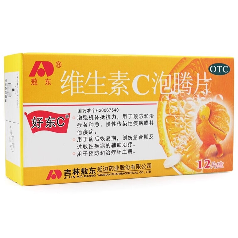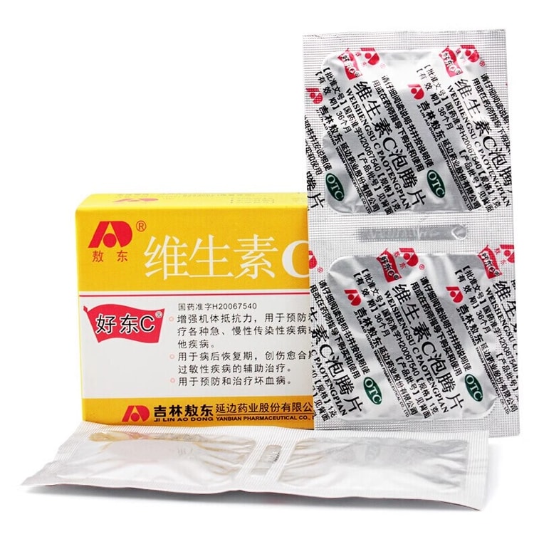 【中国直送】Aodong 体の抵抗力を高めるビタミンC発泡錠、急性感染症のアレルギー前治療、1箱12錠