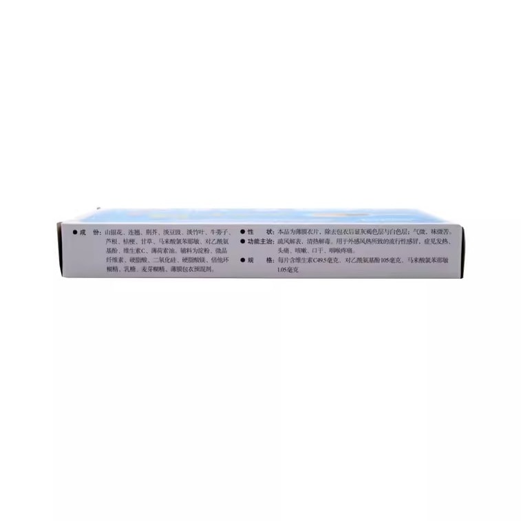 Vitamin C Yinqiao Tablets are suitable for colds with cough and wind-heat. 12 tablets per box