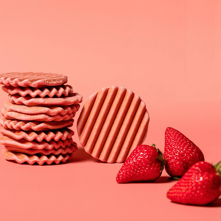 ワッフル生地はイチゴの甘酸っぱさを存分に生かし、軽くて絶妙な食感に仕上げています。