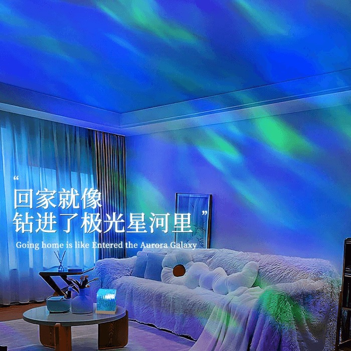 Yue Home Yuejia Home Furnishings ウォーターリップルオーロラ星空シーリングプロジェクターライト、アンビエントムードライト、寝室用ベッドサイドナイトライト、リモコンとType-C電源コード付き、17色調整、8.5*9cm | Yami