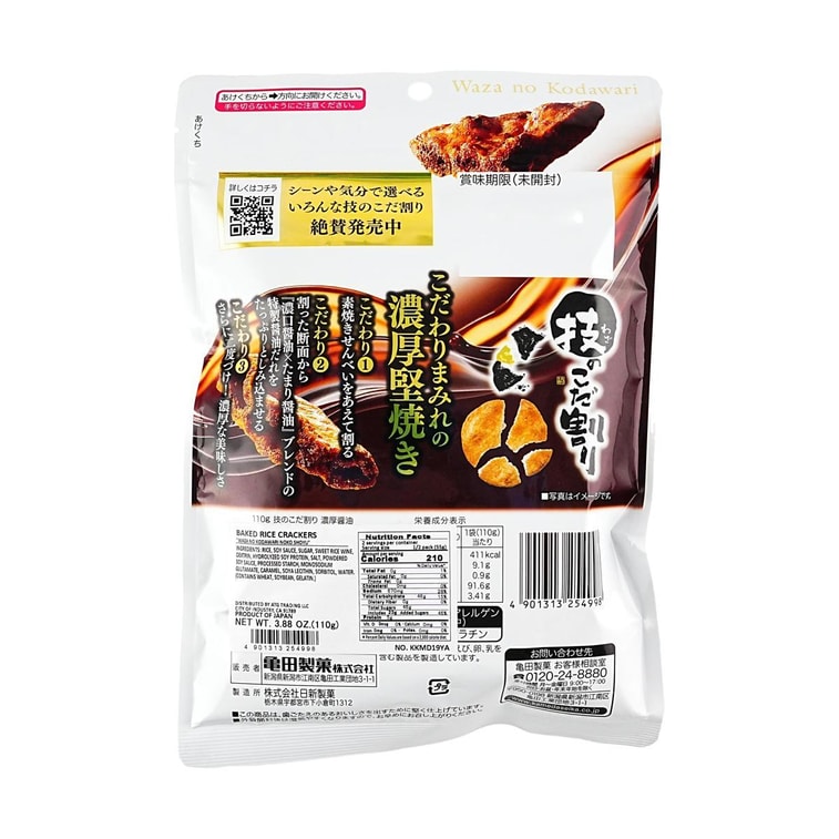 技のこだわり濃厚醤油 - 焼きせんべい、醤油味、3.88オンス