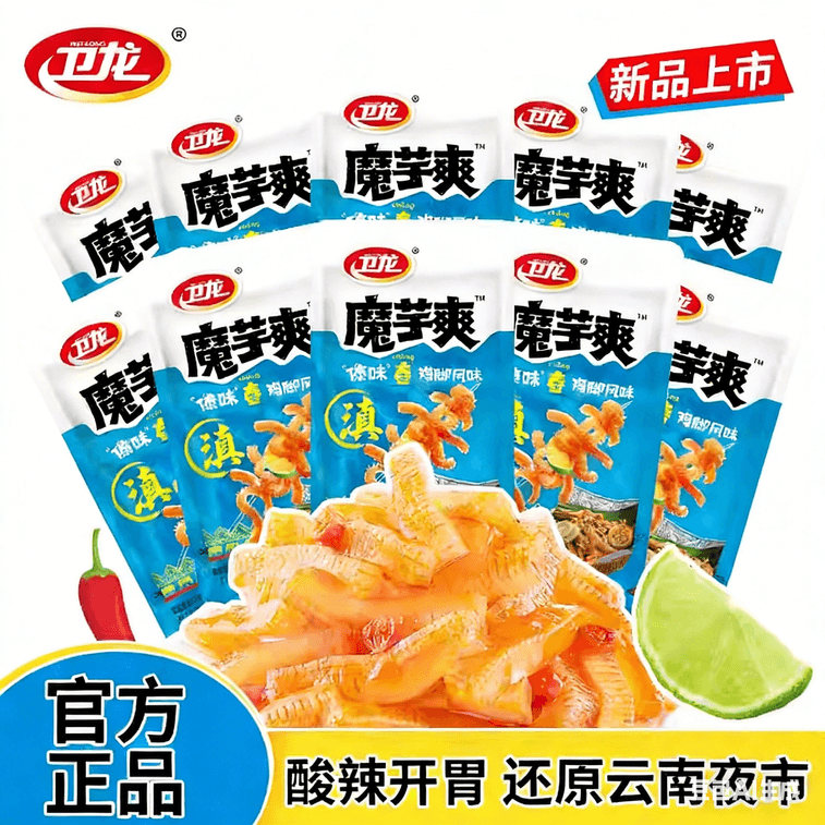 WEILONG 威龍こんにゃく細切り、ベジタリアントライプ、16g×6パック、ダイ風パッションフルーツと鶏足風味 | Yami