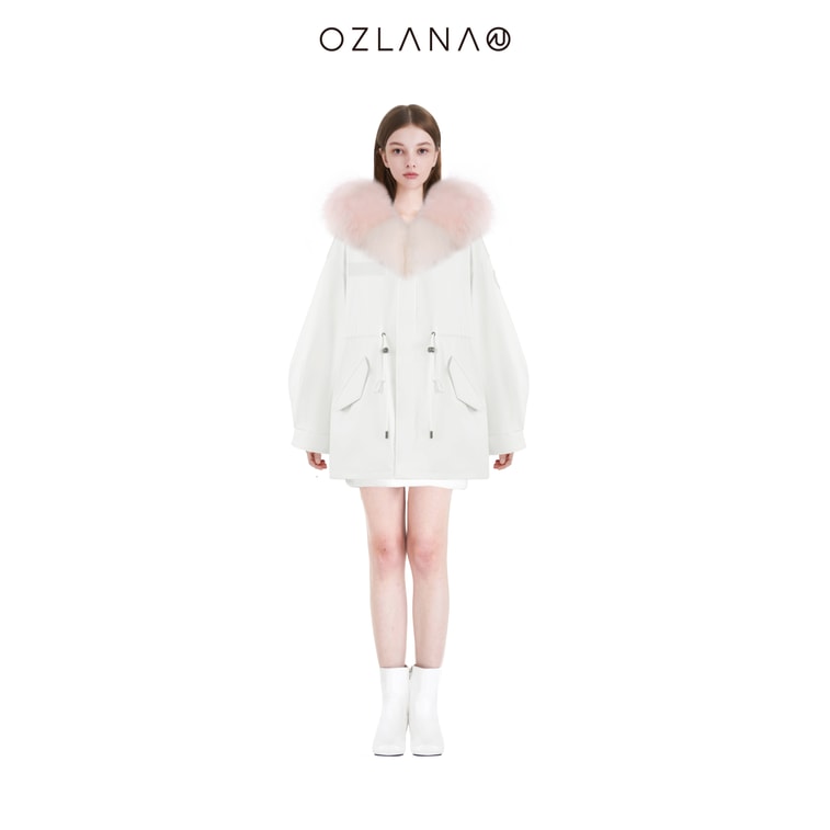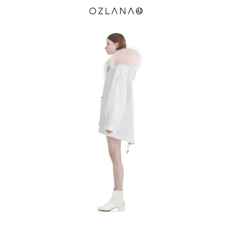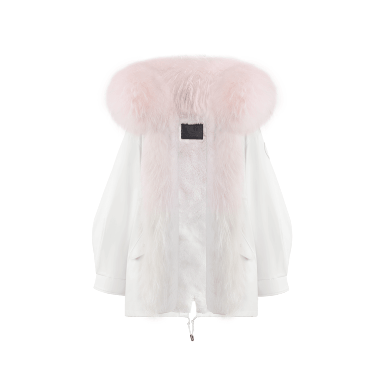 【中国直送】【先行販売】OZLANA ウィンターデザイナーパーカー ホワイトシルエットパーカー+ピンクグラデーション レッキスラビット/ラクーンファー S 発送までに5~15営業日かかります
