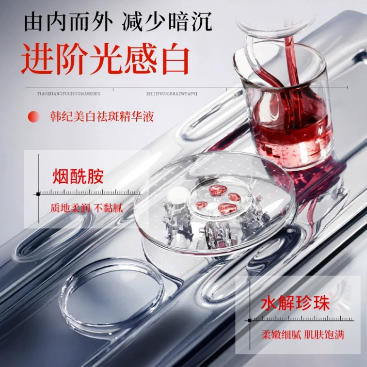 Whitening and Spot-Removing Essence 10ml/box: Hydrates and moisturizes, improves dullness, brightens skin tone, and fades spots.