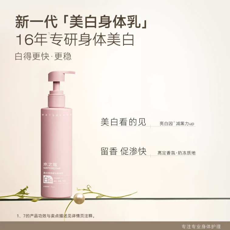 水子口 ホワイトニング&ブライトニング エッセンス ボディローション #ホワイトピーチシャンパン - 美白、ブライトニング、保湿、シルキースムース (新バージョン 220g)