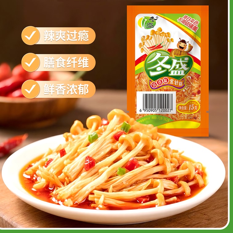 Sichuan Spicy Enoki Mushroom 20-Pack (15g*20) | Independent Packets, Ready-to-Eat Side Dish | Authentic Homestyle Chili Flavor
