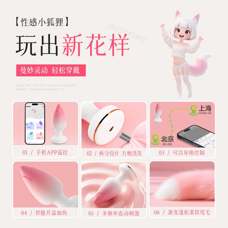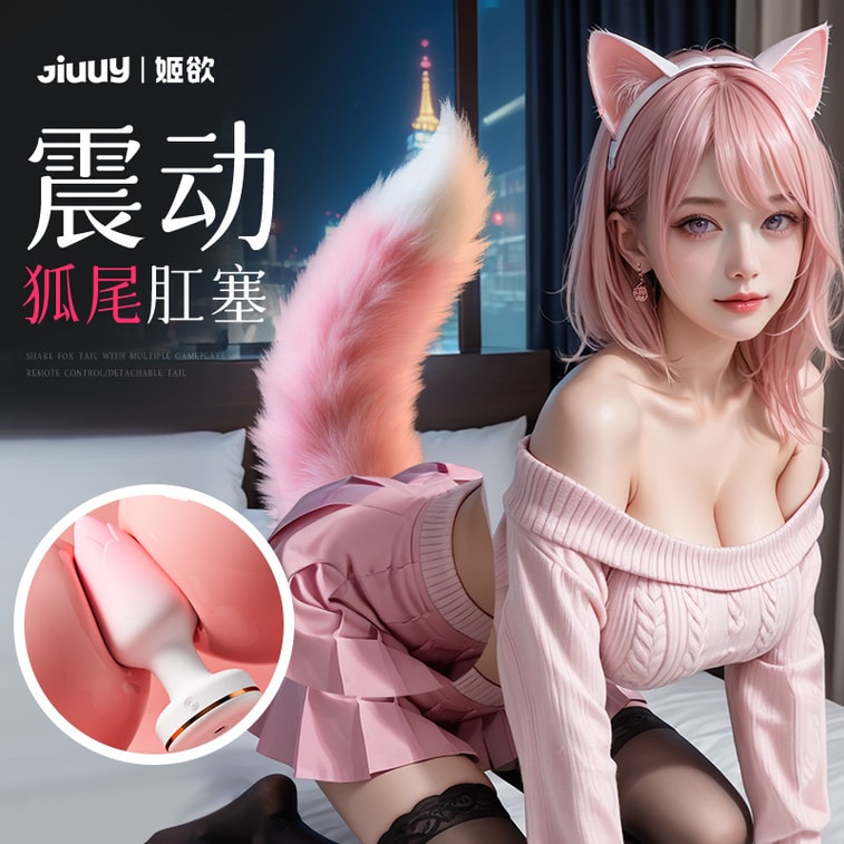 【中国直送】JiYu ワイヤレスリモコンフォックステールアナルプラグ 強力振動刺激 オナニー玩具 大人用 1パック