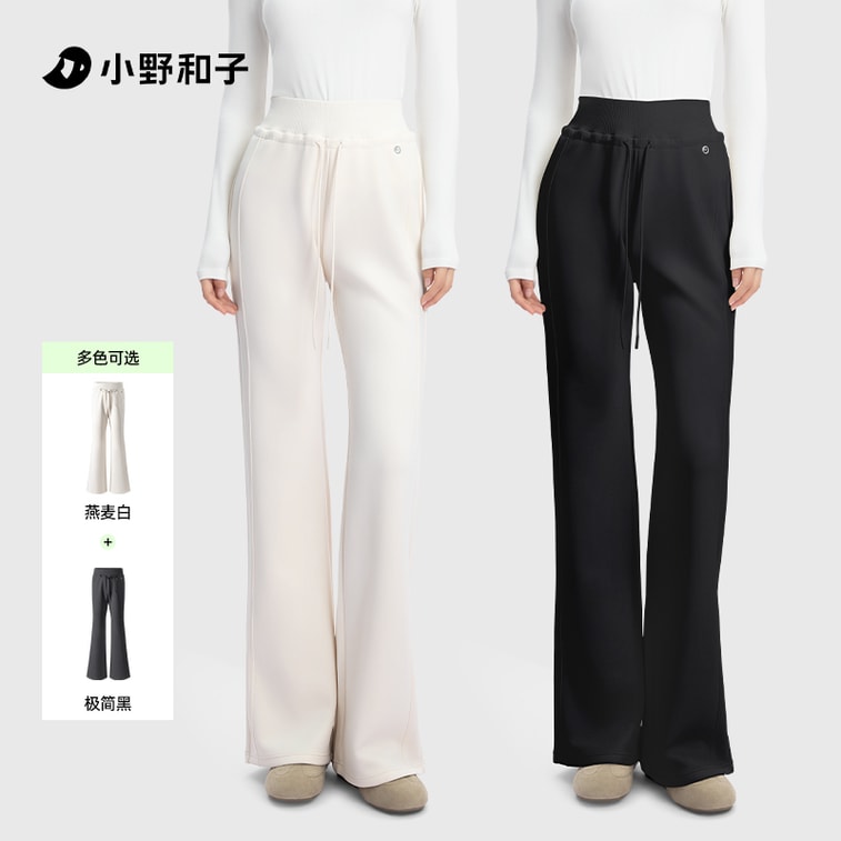 【中国直送】Kazuko Ono レディース フレアパンツ 着痩せ 身長アップ ヨガパンツ カジュアル シャークフレアパンツ ホワイト+ブラック Sサイズ 2枚セット