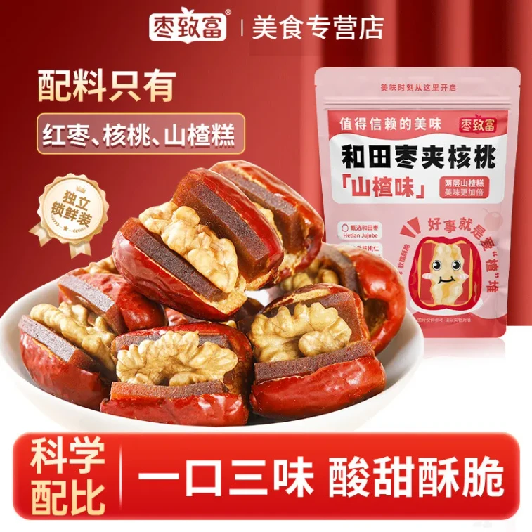 Xinjiang Hotan Jujube Walnut Individually Packed Red Dates Stuffed with Walnuts, Hug Dates, Hawthorn Cake, Sweet and Sour Hug Fruit 108g*1 Bag