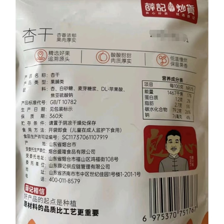薛記 揚げフルーツ&ナッツ - 干し赤アプリコット 88g [人気オンラインスナック]