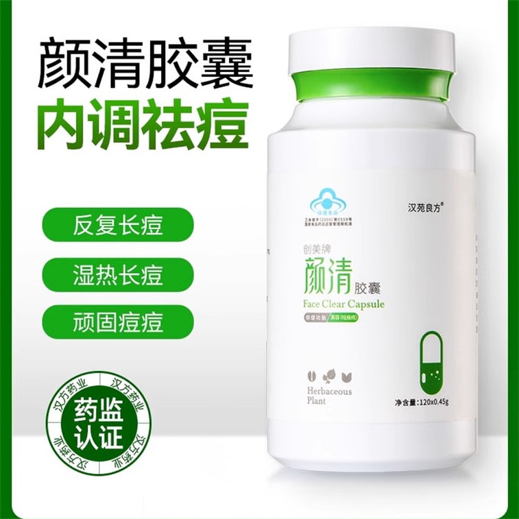 【中国からの直送】漢源良芳燕青カプセル ニキビ除去・内部調整 男性・女性用 ニキビ・黒ずみ・面皰の調整 120カプセル/箱