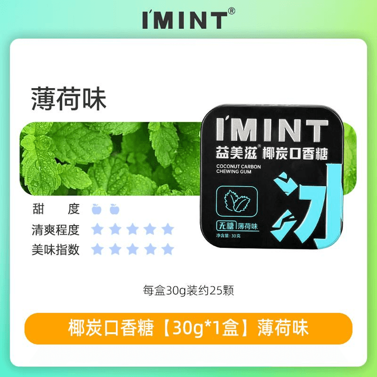 【中国直送】Yimeizi シュガーフリー ミント風味 ココナッツ炭チューインガム ひんやり長持ち 口臭さわやかキャンディ 携帯用箱入りスナック 30g*1箱