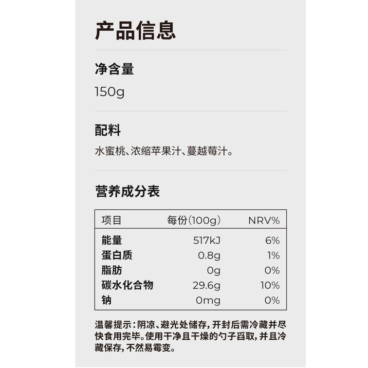 【中国直送】玉葱道 / 純桃ジャム 果肉90% 桃ジャム 150g*1瓶