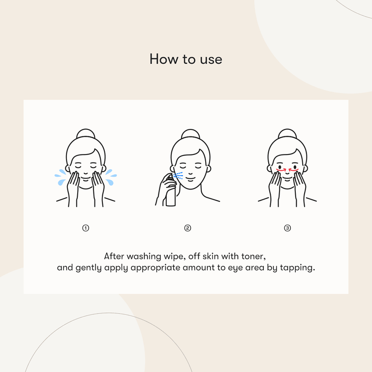 使い方: 洗顔後ふき取り、化粧水で肌を整え、適量を目元に軽く叩き込むように塗布してください。