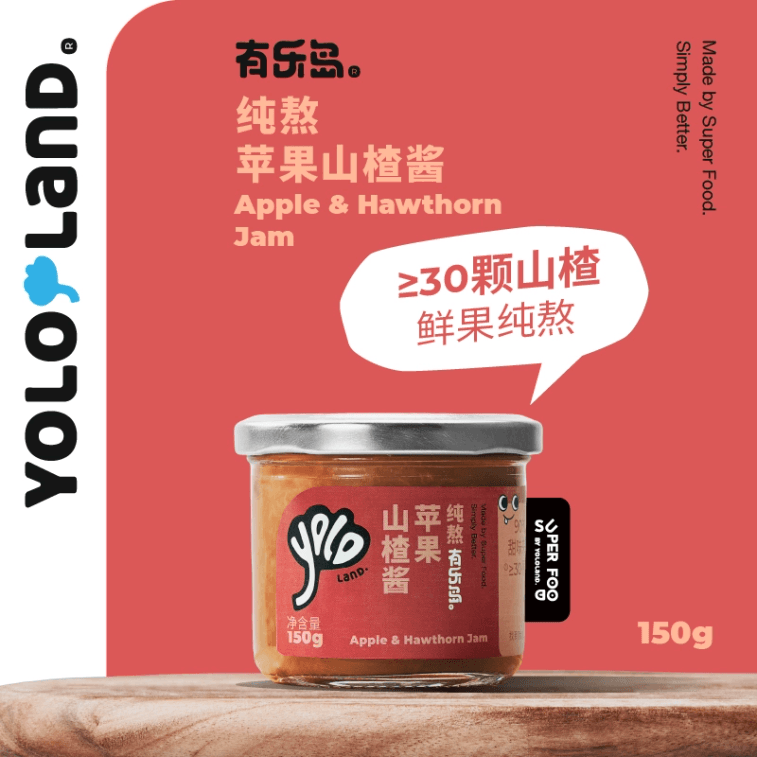 【中国直送】玉树道 / 純りんごサンザシジャム 果肉90%、ペクチン無添加、パンに塗れる白砂キャンディジャム、りんごサンザシジャム 150g×1本