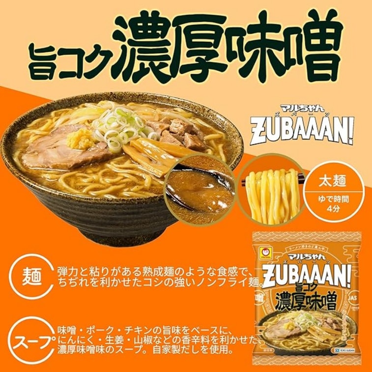 【日本直送】マルちゃん ズバァーン!インスタントラーメン 濃厚でうまい味噌太麺 1パック