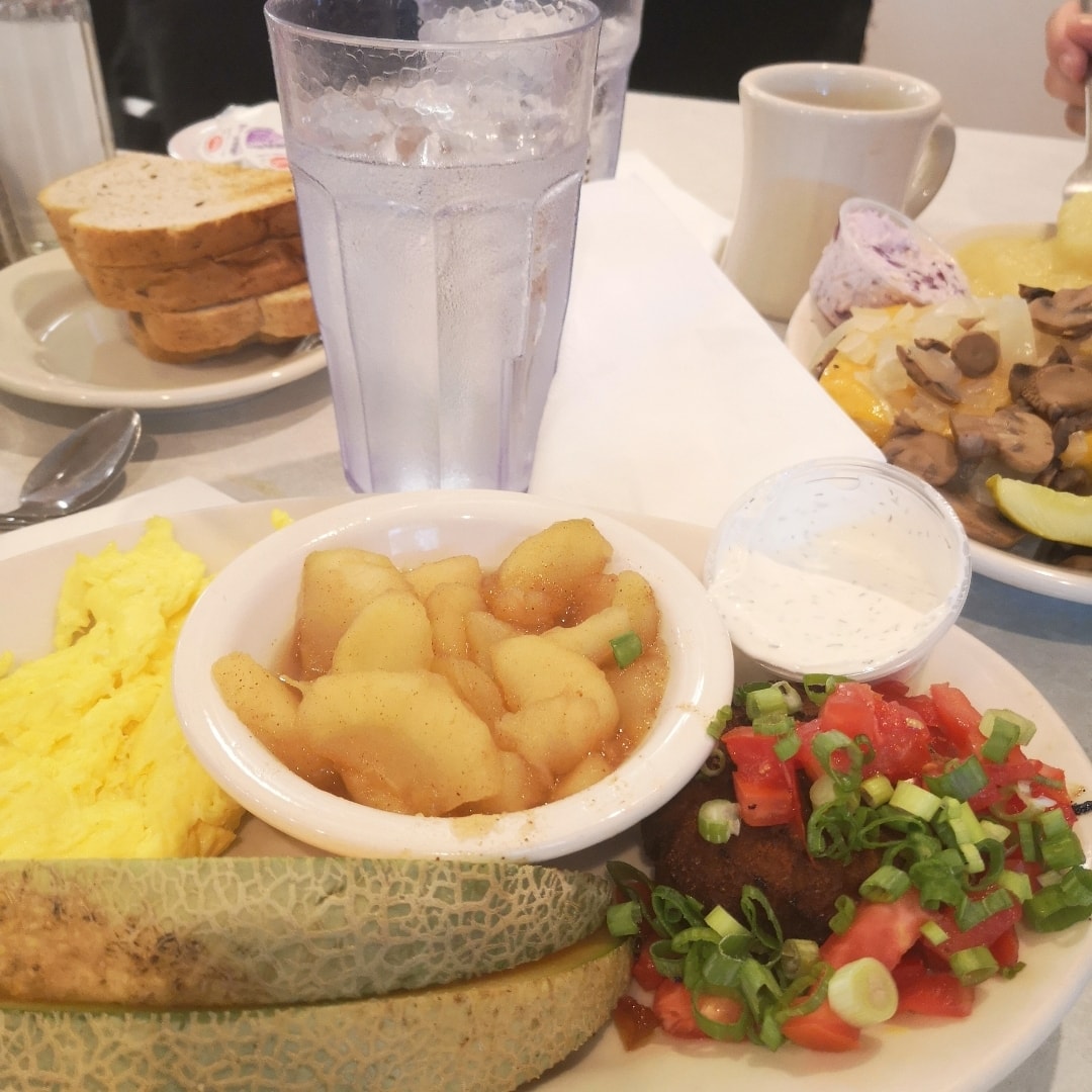 # 燃烧卡路里大作战 # # 百万积分第7季 # I really like this kind of American country style shop, which has a very strong American style. Such as salmon cakes, cinnamon apples, butter scrambled eggs.