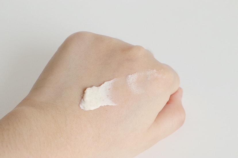 质地方面是乳白色的膏体 比较厚重 但不难推开很像放久了的奶油 但里面颗粒感很强 毛毛躁躁的 感觉还能去角质😉
