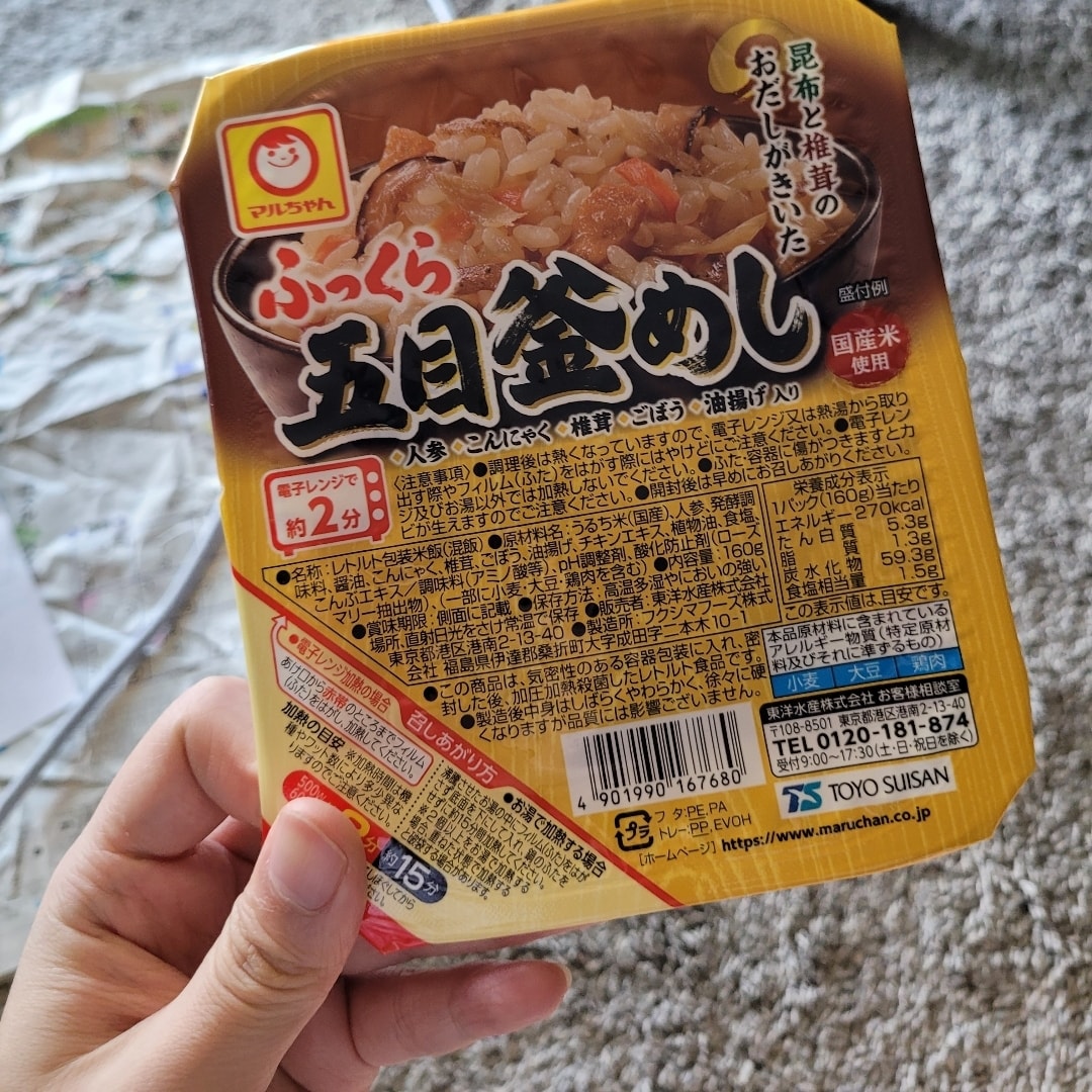 # 2022亚米开学季 # 5.MARUCHAN 微波炉2分即食饭 五目什锦饭 160g。香菇味不明显,牛蒡的香味和鸡油的味道不错。里面没有太多蔬菜和肉,98%都是米。米有点像是普通大米混合糯米,口感不错。整体吃着味道淡淡的,不难吃,还算好吃。不过呆斌觉得不好吃...不会回购了。