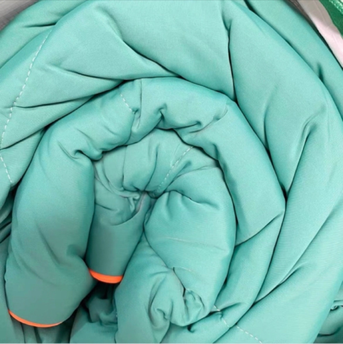# 亚米经验值+1 #我买了浅绿色的躺岛夏凉被,这个颜色非常清凉舒服,盖在身上的感觉也不错,软软糯糯的,面料很舒服,收到非常满意,盖在身上也没有味道,非常舒适的一个夏凉被。