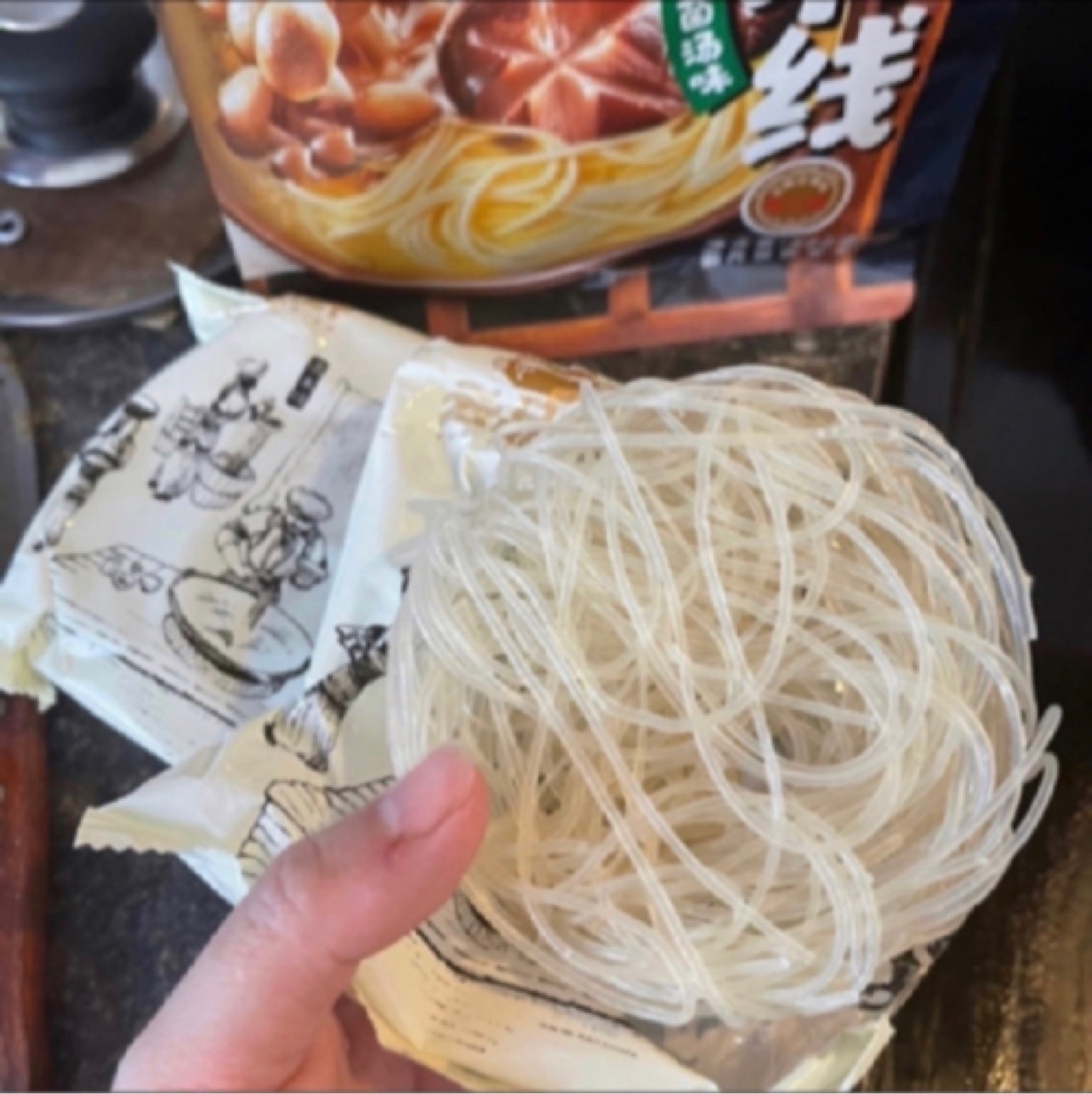 米粉很耐煮几乎都没有断,不会很烂挺劲道的!